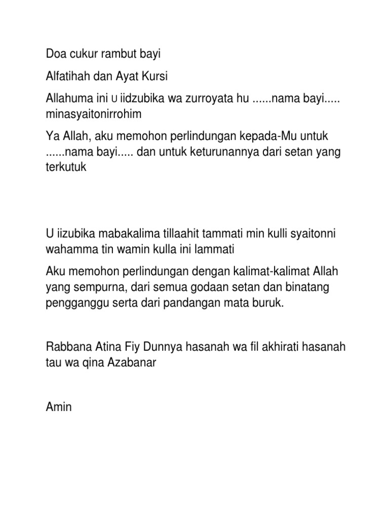 Dari samurah ibn jundub, rasulullah s.a.w. Mencukur rambut bayi adalah salah satu rangkaian dalam acara aqiqah yang dilakukan pada hari ke tujuh setelah kelahiran. Cleo mengikutinya proses lengkap dari awal hingga akhir. Doa aqiqah lengkap dengan arab dan artinya. This app had been rated by 1.
