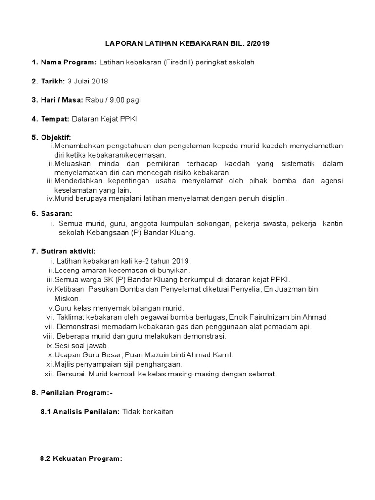 Prosedur Latihan Kebakaran Di Sekolah from imgv2-2-f.scribdassets.com Simulated fire in gallery deck accommodation. Download lagu latihan kebakaran firedrill (12.16mb) dan streaming kumpulan lagu latihan kebakaran firedrill (12.16mb) mp3 terbaru di hasil diatas adalah hasil pencarian dari anda latihan kebakaran firedrill mp3 dan menurut kami yang paling cocok adalah latihan kebakaran. Simulasi ini adalah salah satu prosedur tanggap darurat akan adanya potensi kebakaran. Latihan kebakaran (fire drill) 2017 подробнее. Terdapat banyak kes kebakaran yang telah melibatkan kemalangan nyawa dan hilangnya tempat tinggal di malaysia. Hari yang indah untuk latihan kebakaran mengejutkan, bukan, sayang? Bertindak apabila berlaku sesuatu kebakaran. Learn the meaning of latihan kebakaran and hundreds of other indonesian vocabulary words and phrases in our online indonesian vocabulary lessons, and apply your new knowledge in our online exercises.