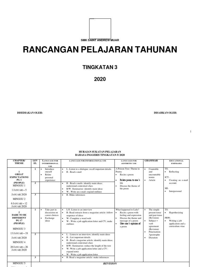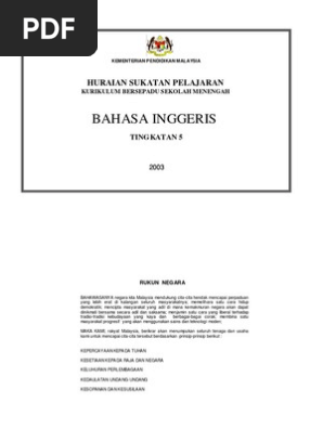 Buku teks digital bahasa inggeris aliran kemahiran tingkatan 5 mpak ini ditulis berdasarkan dokumen standard kurikulum dan pentaksiran (dskp) tingkatan 5. Skema jawapan dan jsu kertas soalan bahasa inggeris kertas 1 tahun 5 kssr Ujian mac bahasa inggeris tingkatan 5 2018 adalah sebahagian kertas soalan yang telah berjaya dikumpulkan dan dikemaskini oleh gurubesar.my. Himpunan nota bahasa inggeris tingkatan 5 yang terbaik untuk para guru muat turun cikgu ayu. Huraian sukatan pelajaran bahasa inggeris tingkatan 5 2 the learning outcomes of the syllabus specify the skills to be achieved by learners in the three areas of language use, namely the interpersonal, the informational and the aesthetic.